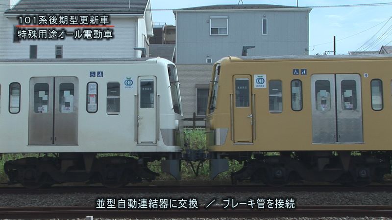 旧性能車に分類された赤電のブレーキシステムを改良し、冷房装置を搭載して、車体色を黄色とした401系・701系・801系を中心に、101系との併結列車も収録